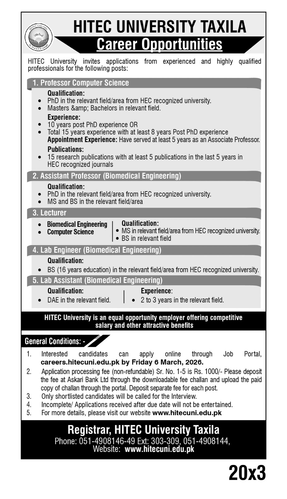 Address: HITEC University Taxila, HMC Road, Taxila Cantt